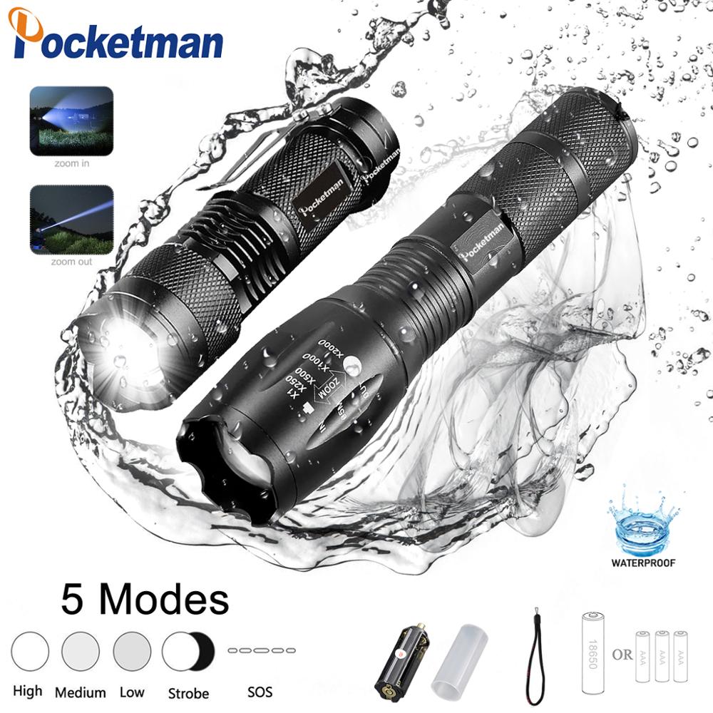 4000LM + 6000LM Q5 Ultra Bright Powerful Tactical LED Flashlight T6 Zoomable Portable Linternas LED Outdoor Torch Light For Camp